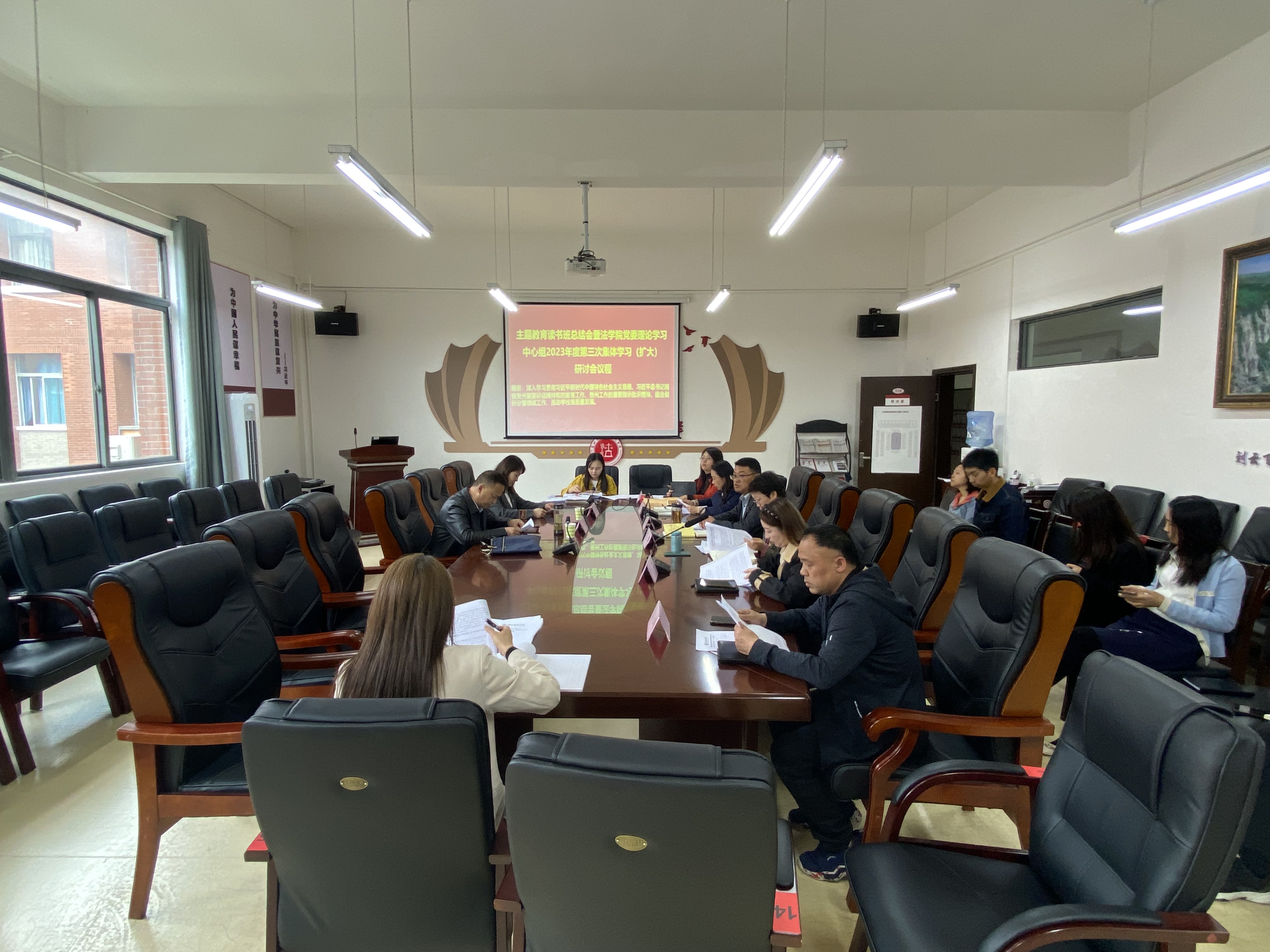 (法学院 图文/报道 徐方)2023年4月28日,法学院党委理论学习中心组在文德楼A8-310会议室召开主题教育读书班总结会暨法学院党委理论学习中心组2023年度第三次集体学习(扩大)研讨会。学院领导及全体行政人员参加会议。学院党委书记詹伟主持会议。校第八督导组到会指导。