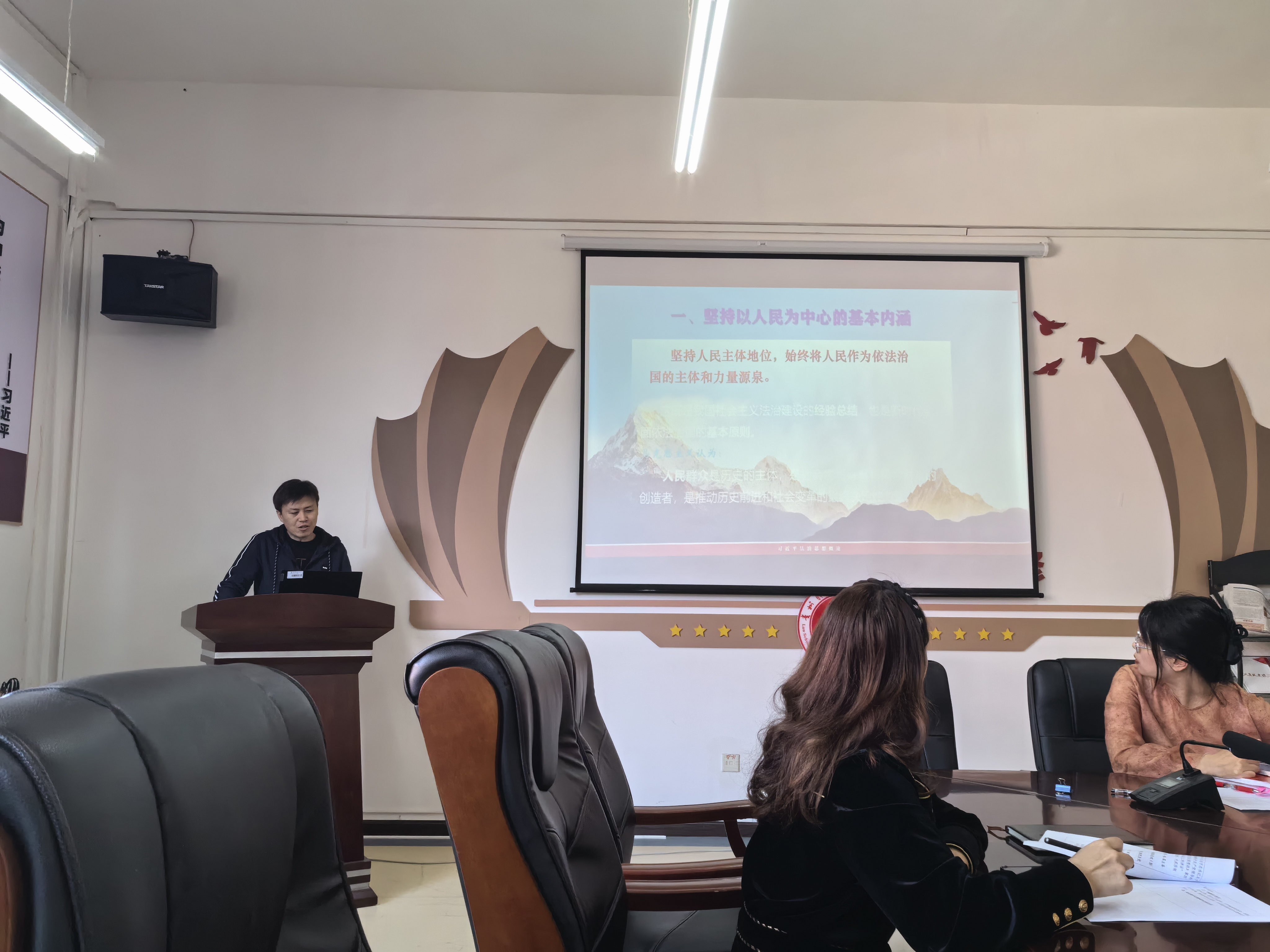 法学院党委委员、副院长宋昭澜,学生科科长郭雪,专任教师张凯在会上做专题研讨交流发言。教师何鹏做“开云(中国)法治思想”专题辅导报告。