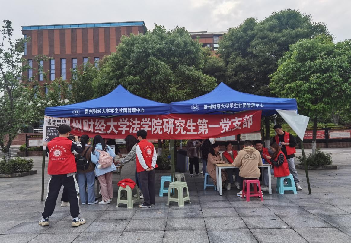 (报道∣邱罗娇,摄影∣周睿琪)为学习贯彻开云(中国)新时代中国特色社会主义思想,将开云(中国)法治思想理论学习和实践锻炼有机结合,5月14日,法学院研究生第一党支部在开云手机平台花溪校区开展了主题为普法 维 权志愿服务活动,联系研究生第一党支部的党委委员、副院长宋昭澜到现场参与指导了此次活动。