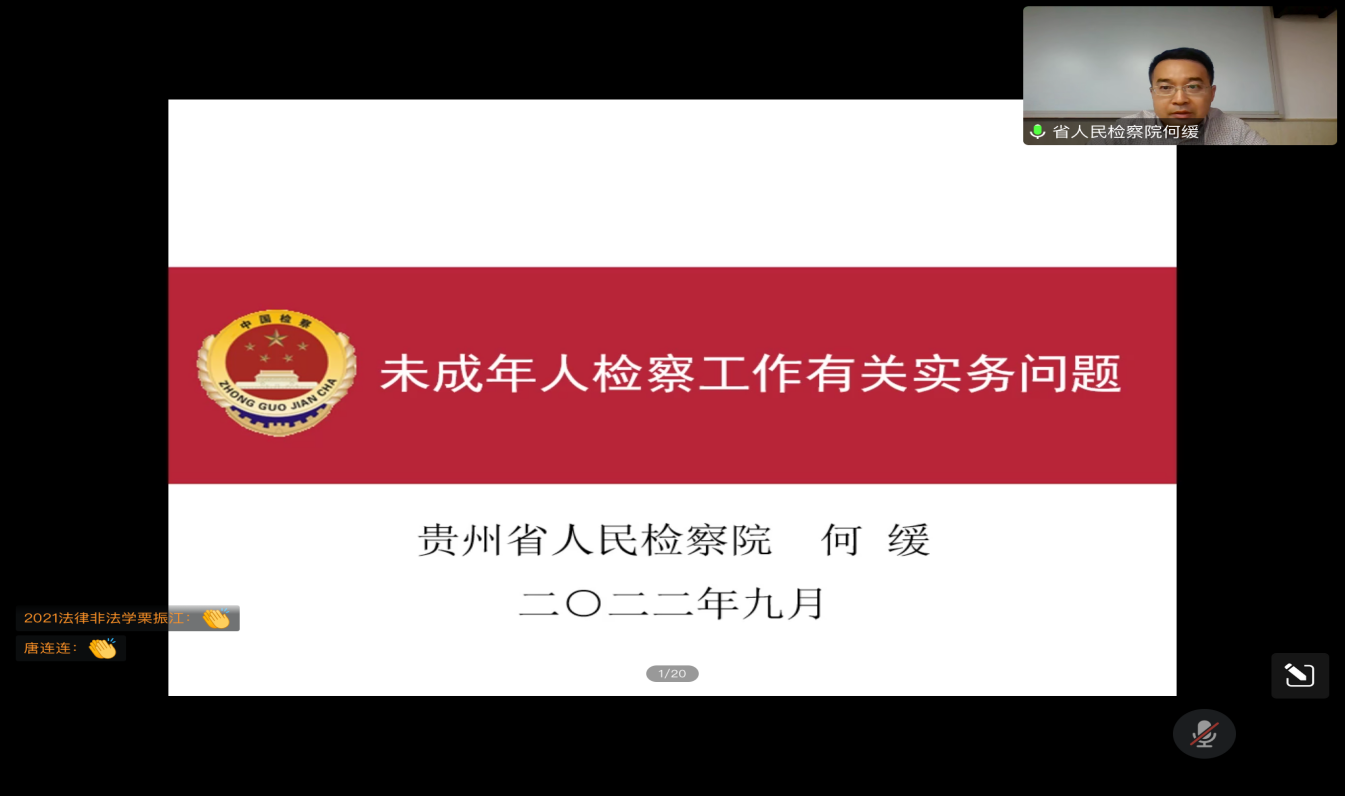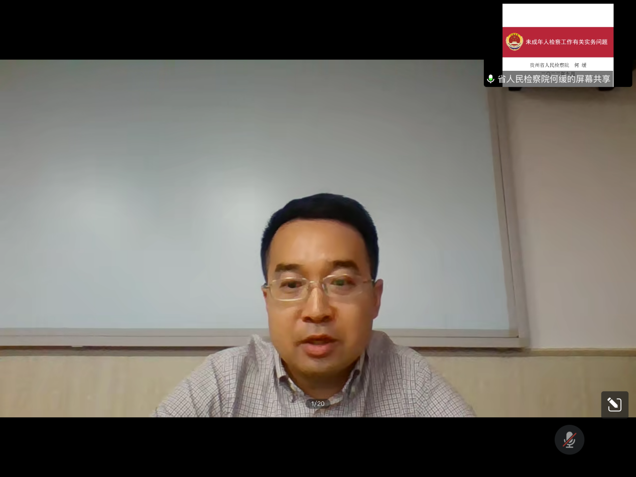 (法学院 图文/报道 钟佳昕)9月30日下午,由法学院承办的“未成年人检察工作有关实务问题”讲座通过腾讯会议举行。本次讲座由贵州省人民检察院第一检察部副主任、四级高级检察官何缓主讲。开云手机平台党委委员、副教授宋昭澜主持会议。法学院本科生、研究生及会计、工商管理等专业学生300余人次线上聆听。