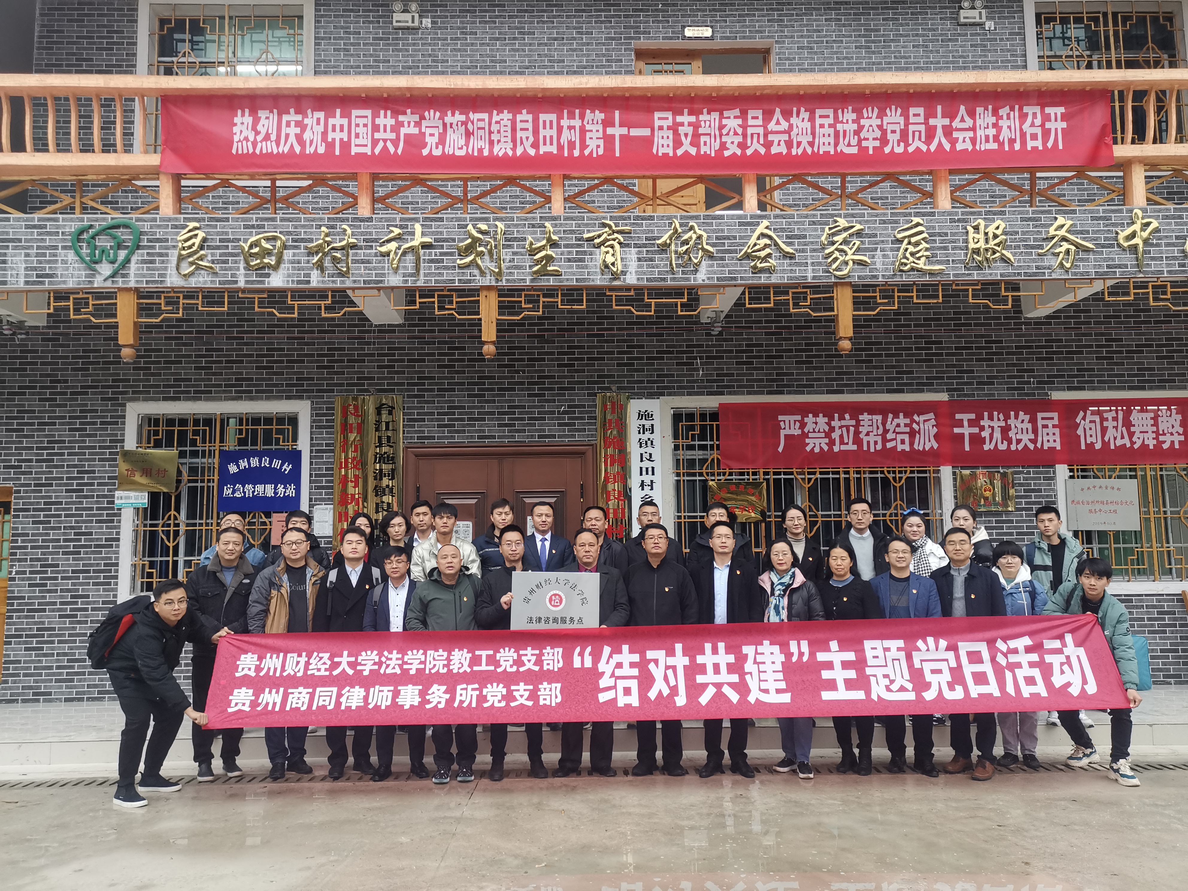 (法学院 图文/报道 田儒成)11月16日,法学院党委赴台江县施洞镇良田村开展“学党史、办实事、法律助力乡村振兴”活动,并法学院教工党支部、贵州商同律师事务所党支部结对共建“乡村振兴、法治同行”主题党日活动。