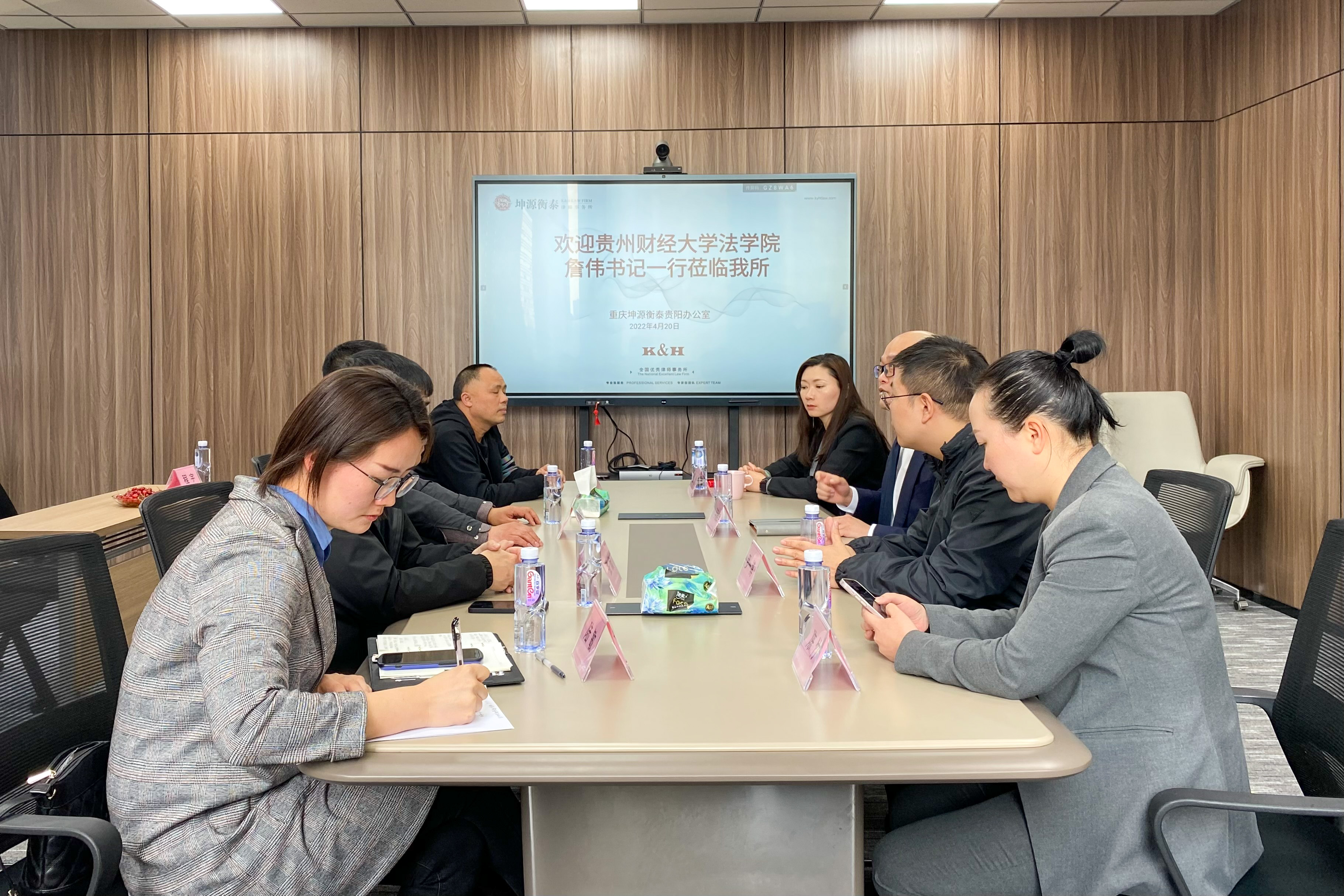 (法学院 图文/报道 程宇)为进一步加强我院与校外单位的交流联系,积极为我院学生拓展学习、实习、就业岗位,帮助学生更好的将理论知识运用于实践。2022年4月20日,我院党委书记詹伟带队,教务处张欣、我院教师曹务坤、陆敏、程宇随同赴重庆坤源衡泰(贵阳)律师事务所(以下简称:坤源衡泰律所)举行“开云手机平台实践教学基地”揭牌仪式,坤源衡泰律所主任李毅维及相关人员参加揭牌仪式。