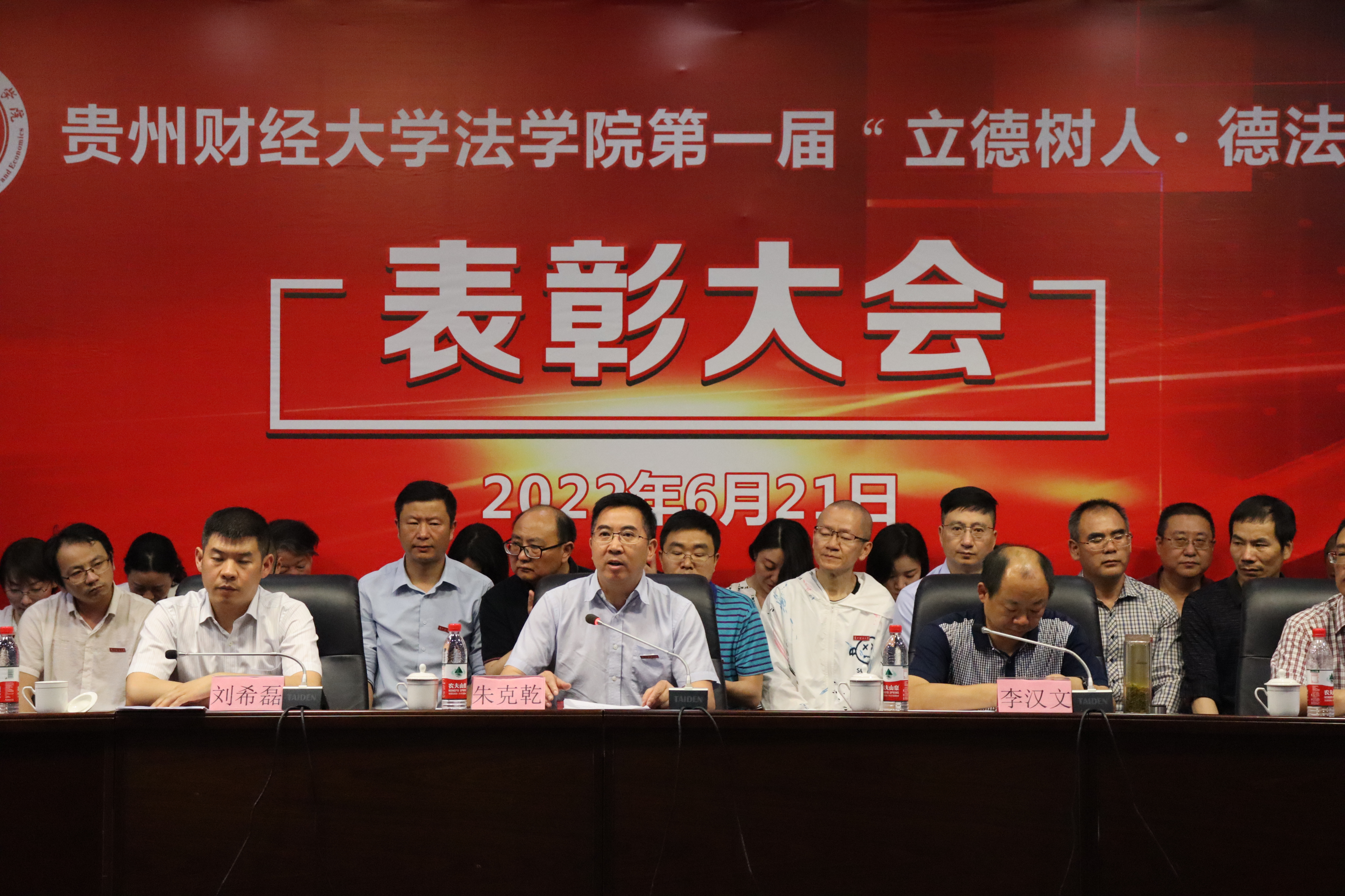 朱克乾希望法学院广大师生传承红色基因,继续围绕“德法兼修”这个主题,以更加饱满的热情、更加昂扬的斗志,不忘初心,扎实学习、工作。他还向法学院全体师生提出了四点希望:一是夯实信仰之基,做中华民族伟大复兴的实践者;二是保持坚毅之心,做担当奉献的奋斗者;三是激发创新之力,做德法兼修的攀登者;四是传承创先争优之风,将“立德树人 德法兼修”的表彰大会一届一届的办下去。