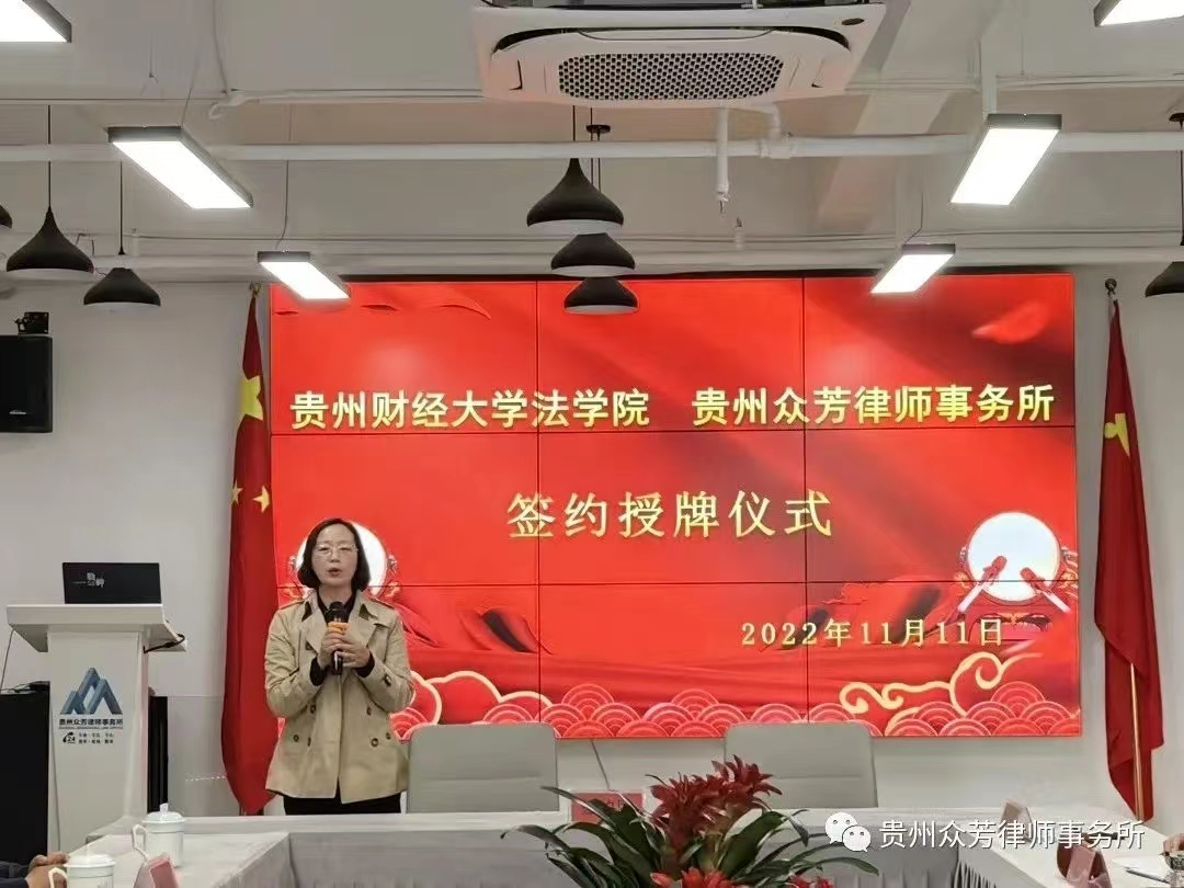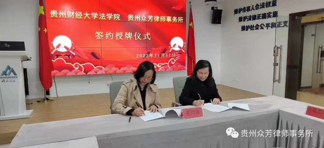 授牌仪式现场,开云手机平台和贵州众芳律师事务所签订了《实践教学基地合作协议》。今后,双方将进行全方位、多层次的深入合作,包括互相提供平台,互派人员交流,建立学习、培训和交流机制,共同进行律师事务及律师业务发展方面的理论研究和课题研究。