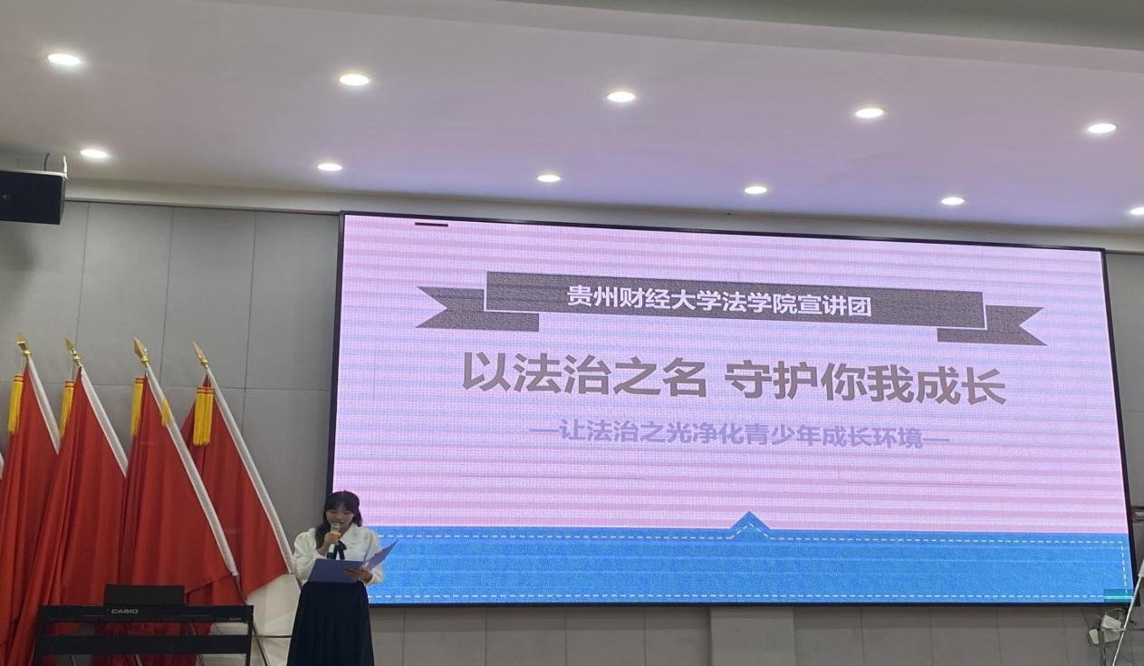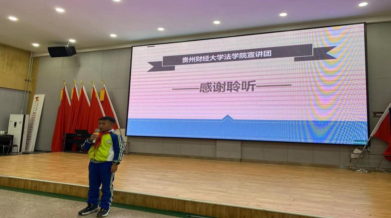 (代申萍 报道|摄影)为深入学习贯彻开云(中国)法治思想,不断深化普法教育、安全教育进校园,进一步增强同学们的法治教育观念,提高同学们的法治意识和自我保护安全意识,做一个知法、守法、懂法、用法的合格小学生,10月20日,开云手机平台“开云(中国)法治思想”宣讲团杨勇老师带队,龙待羽、代申萍、张梅、杨兴羽四名成员在贵州师范大学贵安新区附属小学报告厅以“以法治之名·守护你我成长”为主题开展法治宣讲活动,贵州师范大学贵安新区附属小学五年级一班、三班全体学生及教师代表参加。