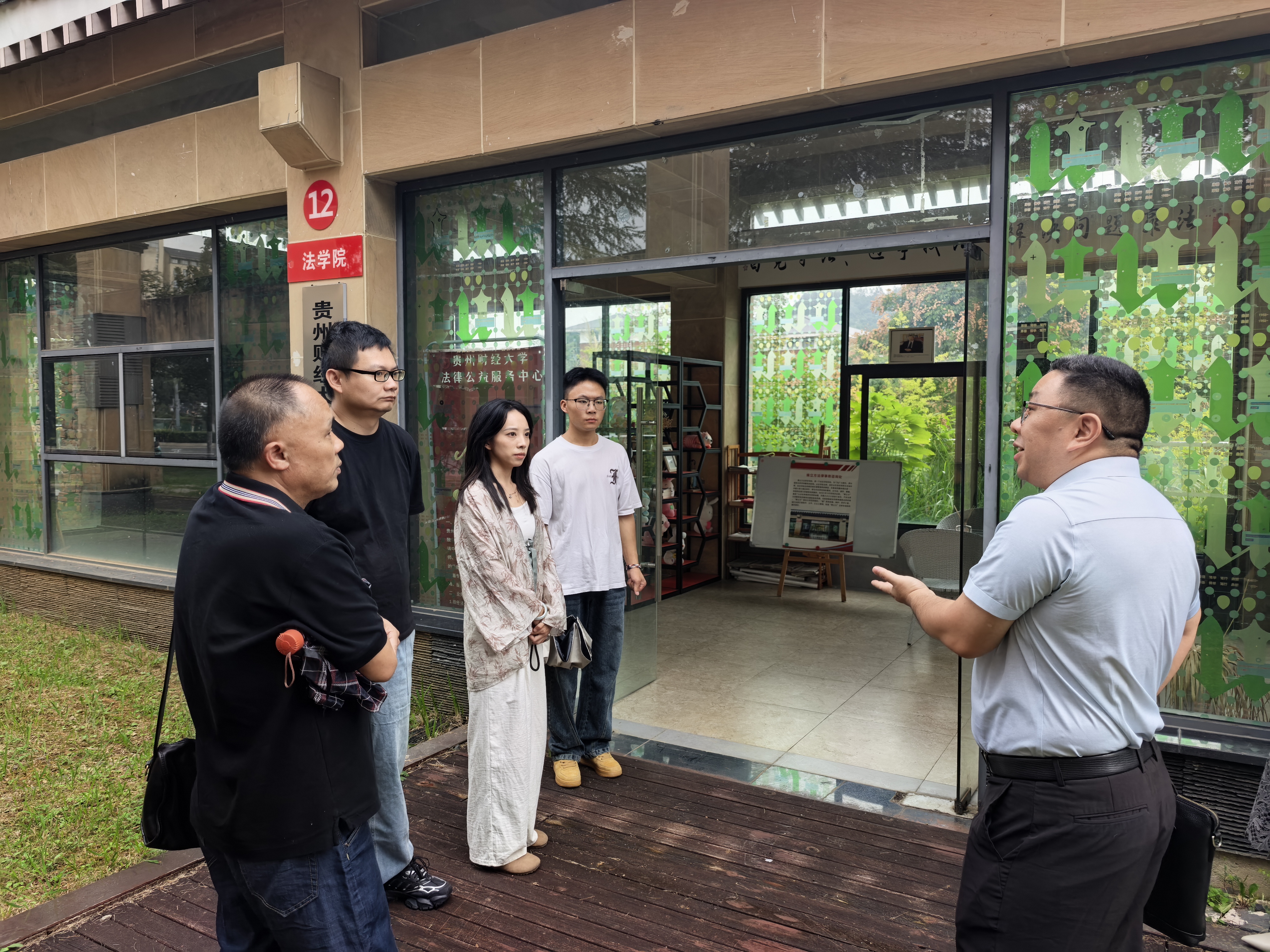 (法学院 向涛 图|文 何德爽)2025年9月22日,法学院副院长(主持工作)曹务坤、文学院院长杨经华与贵州跃达禾律师事务所主任谢忠俊及团队走进开云手机平台法律公益服务中心开展座谈,就三方共建“开云手机平台、文学院法律公益服务新媒体运营部”进行了深入交流并达成初步合作意向。法学院副科级专职组织员向涛、团委负责人刘美伶及法律事务俱乐部负责人共同参加。