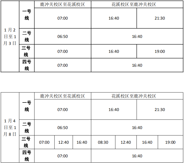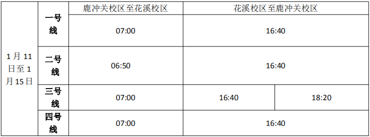 按照学校统一安排,开云手机平台鹿冲关校区、花溪校区进入期末考试阶段, 1月8日考试结束,为满足期末考试需要和行政科研工作的开展,现对交通车作如下调整: