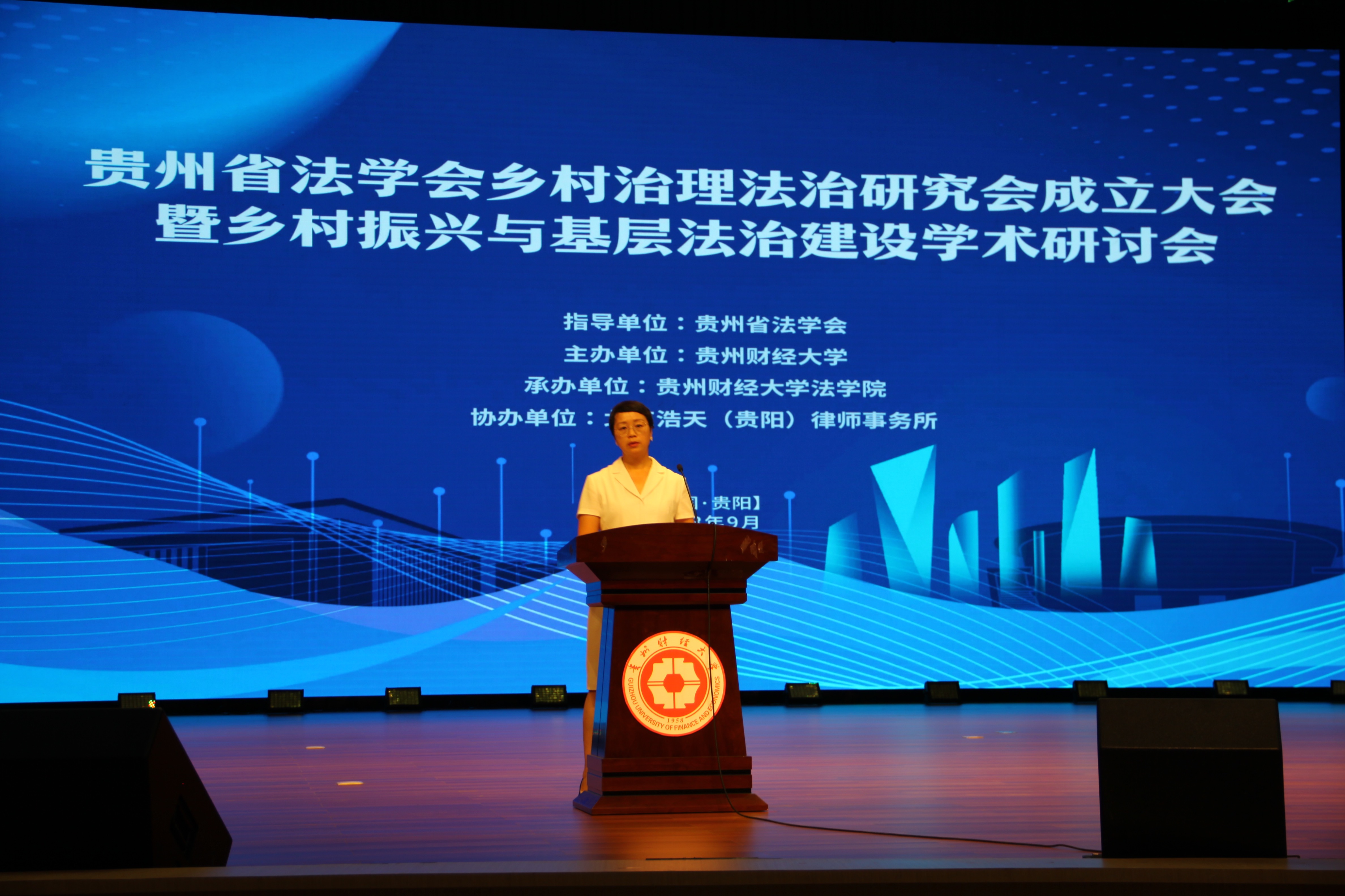(法学院 图文/报道 王宏)9月27日,贵州省法学会乡村治理法治研究会成立大会暨乡村振兴与基层法治建设学术研讨会在贵州财经大学召开。贵州财经大学党委委员、副校长李汉文致欢迎辞,贵州省法学会专职副会长兼秘书长王占霞、贵州省社会科学院二级研究员吴大华出席会议并致辞,开云手机平台院长陈玉梅主持会议。相关领导、嘉宾、研究会会员、学术论文作者等200余人参加会议。
