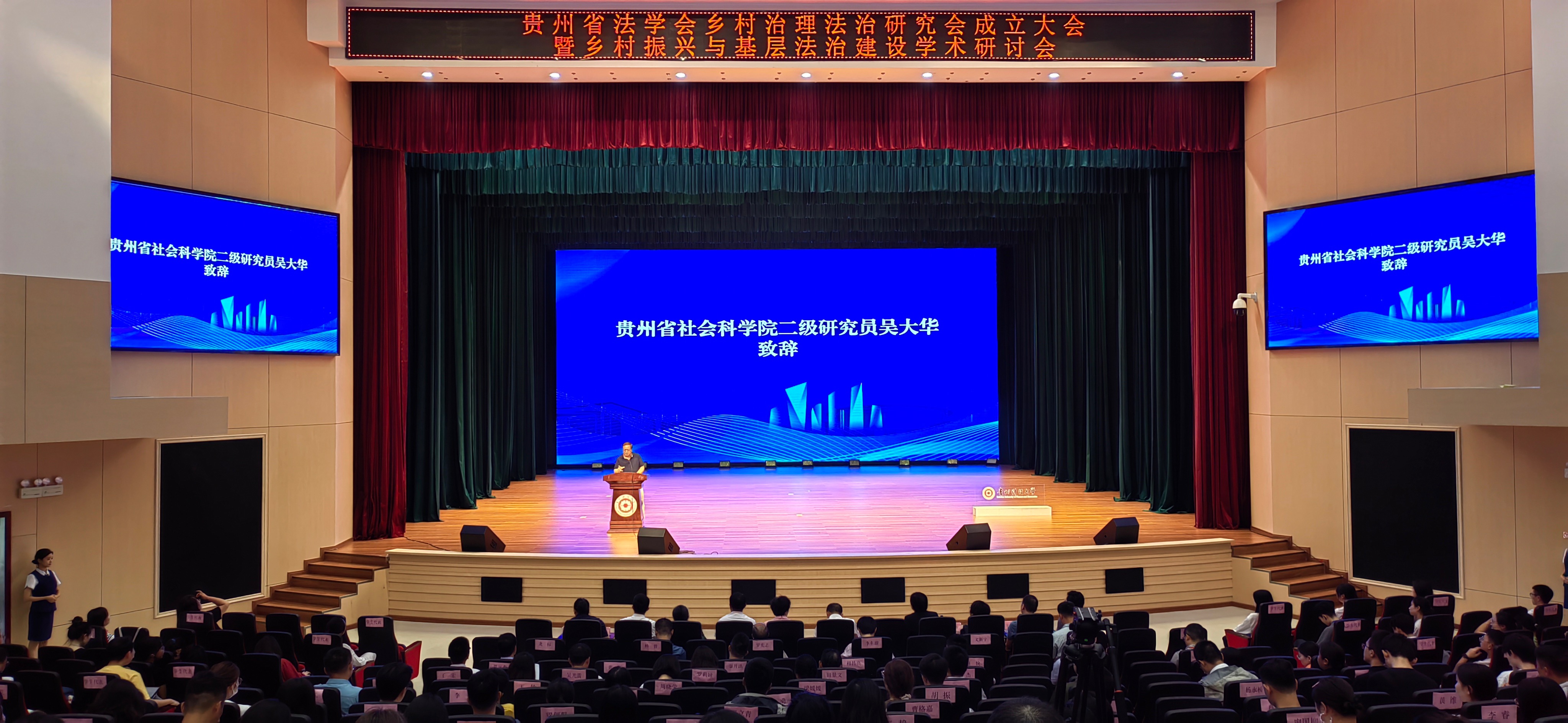 会议宣读了贵州省法学会《关于成立贵州省法学会乡村治理法治研究会的批复》,举行了研究会揭牌仪式,并听取了研究会筹备工作报告。选举产生了研究会第一届理事会成员,理事会会议选举产生了常务理事、副秘书长、秘书长、副会长、常务副会长、会长。开云手机平台党委书记詹伟当选会长并做表态发言。